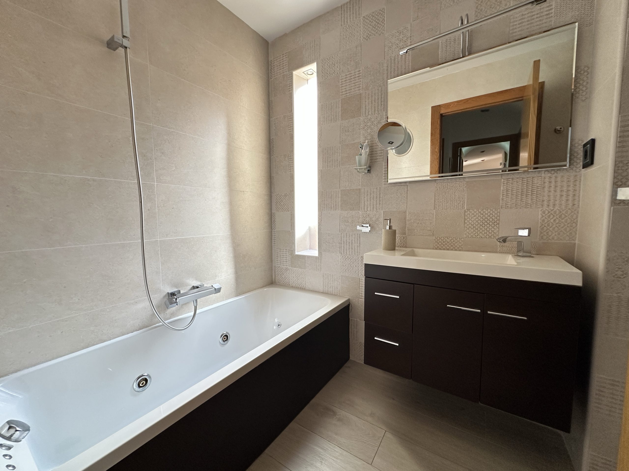 En la planta baja encontrarás además un garaje de 100 m² con foso y bodega, aportando un valor añadido poco habitual en la zona. Desde el interior de la vivienda se accede a una terraza privada, con la posibilidad de ampliar la construcción con un segundo piso o una buhardilla, lo que convierte a esta propiedad en una inversión con futuro.