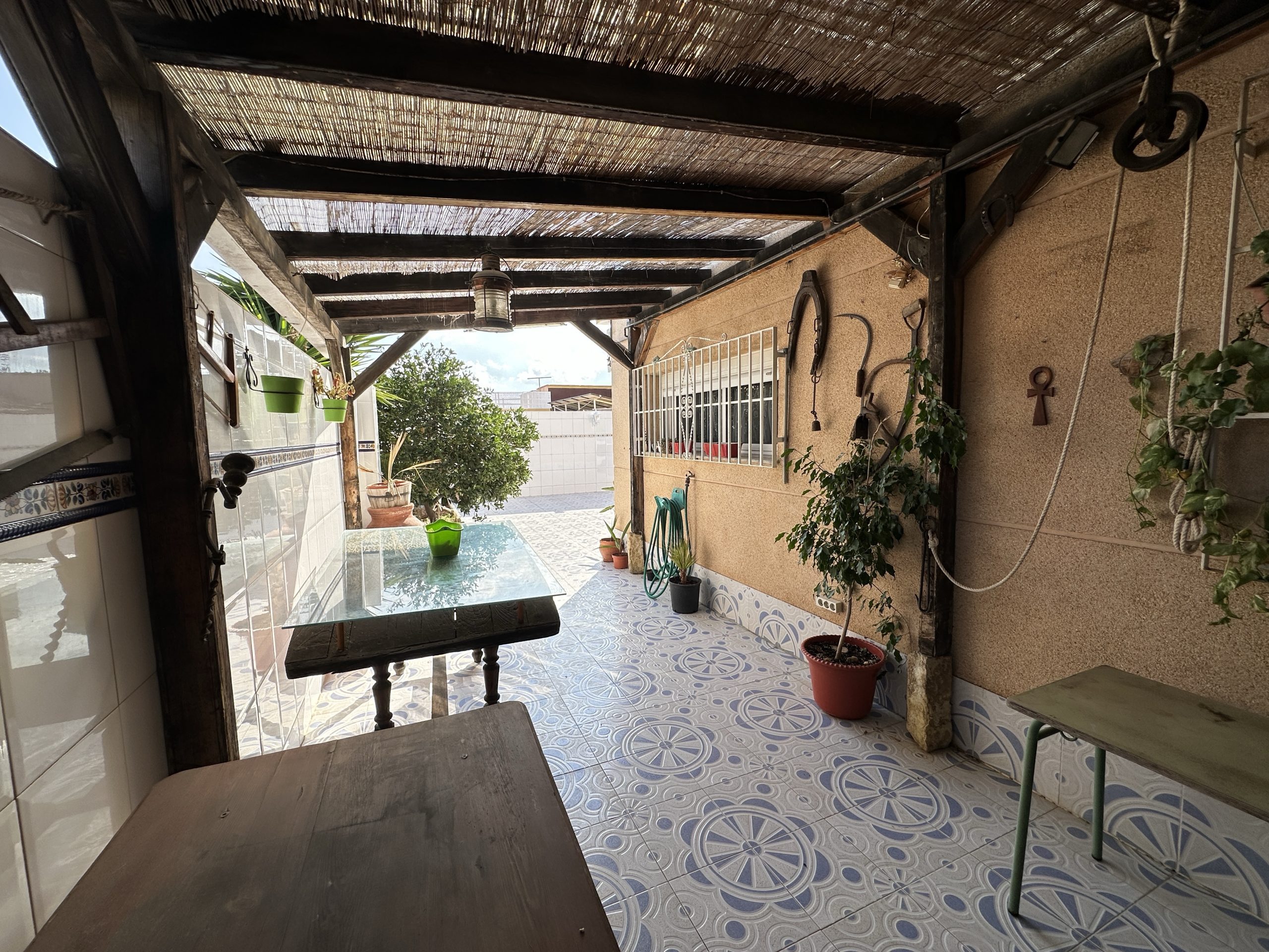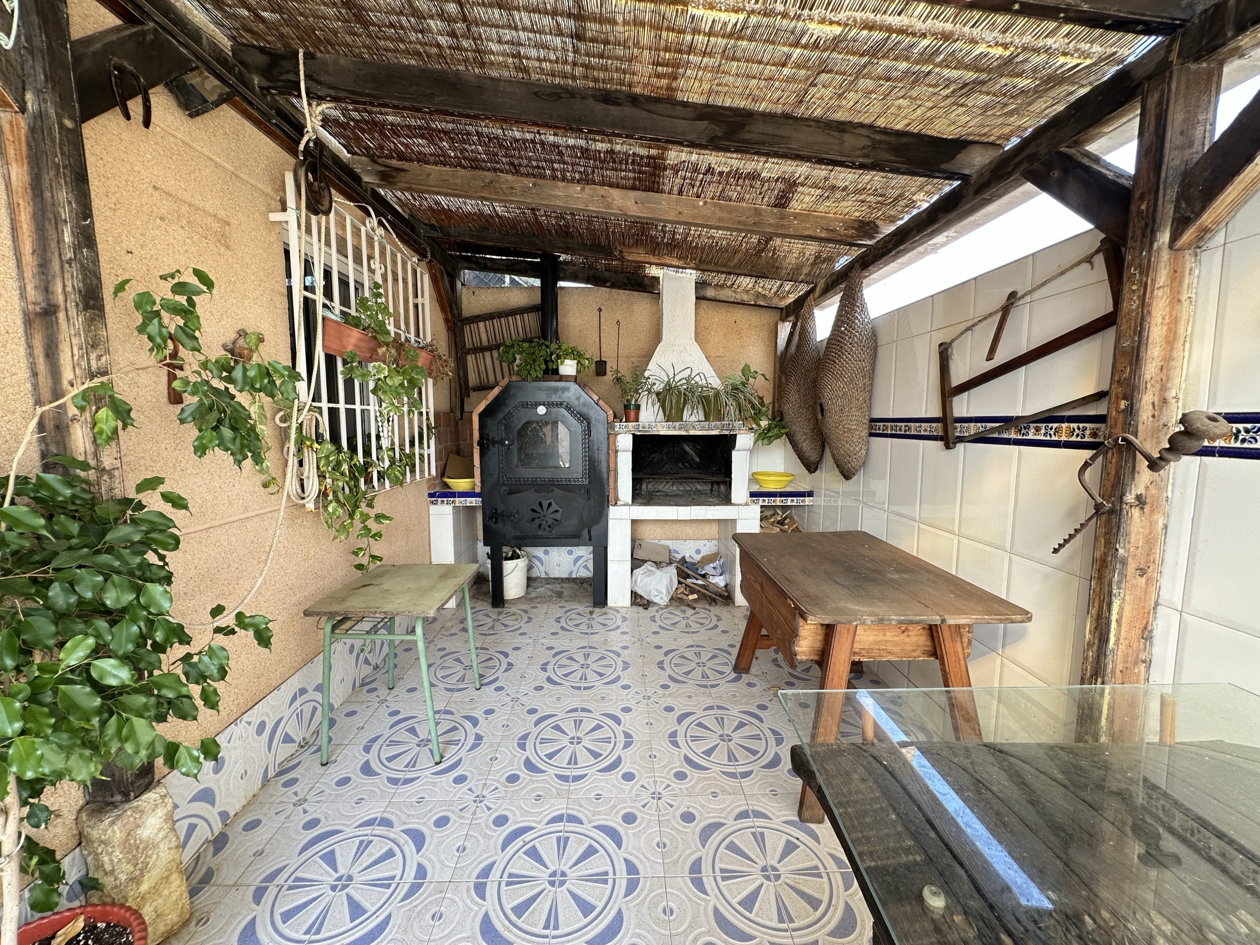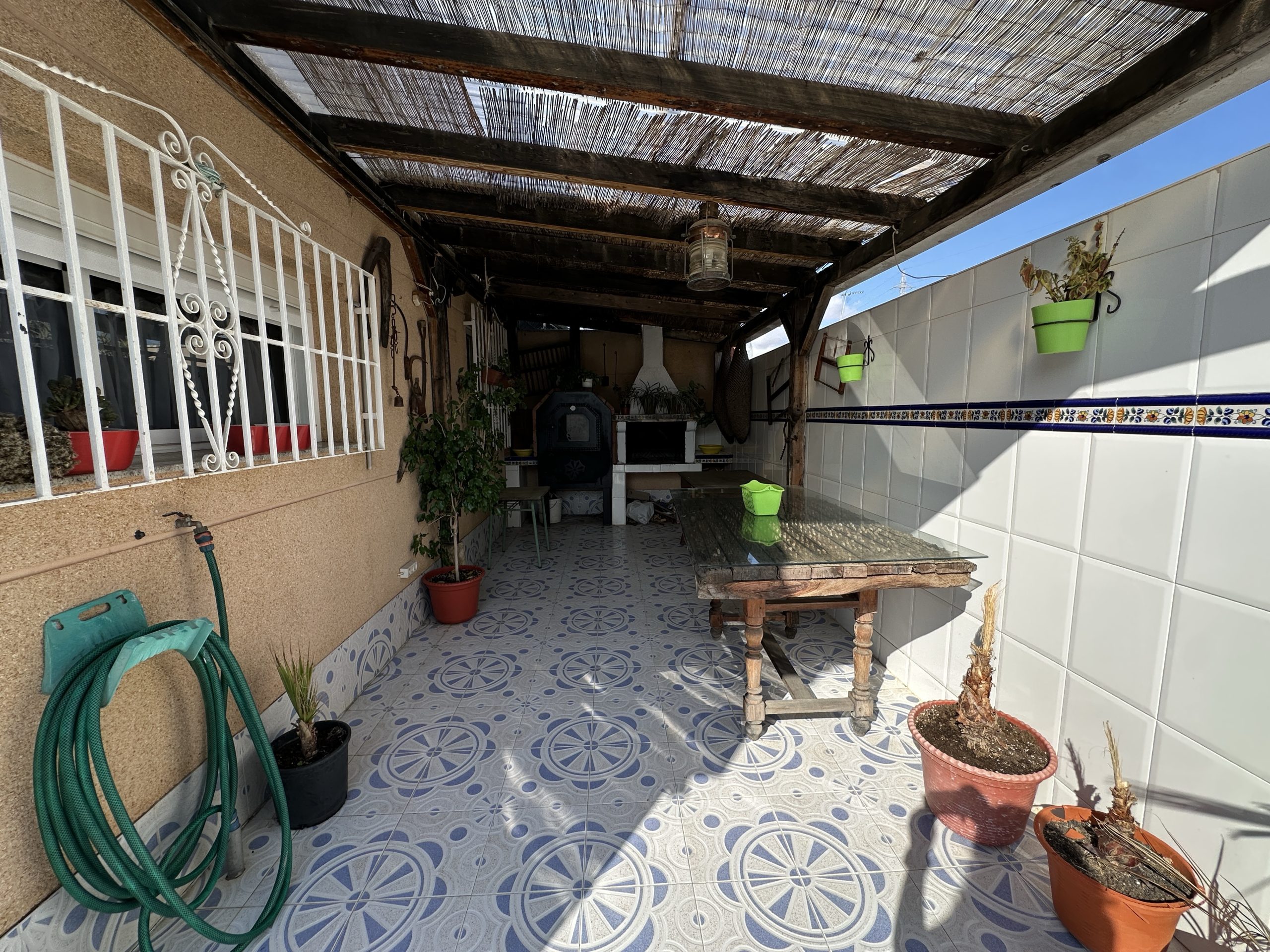 La casa se levanta sobre una parcela de 333 m² y cuenta con 135 m² construidos, distribuidos en 4 dormitorios, 2 baños completos (uno con ducha y otro con bañera de hidromasaje), cocina interior y cocina exterior, sala de estar, comedor y un gran patio con barbacoa y horno de leña, ideal para disfrutar en familia y con amigos.